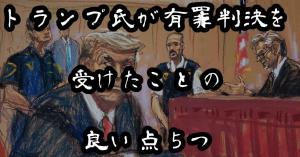 トランプ氏のような偉大な方が有罪になるのは酷すぎる話ですが、こうやって俯瞰してみると今回有罪になったことはそこまで悪く無いのかもと思えるでしょう。