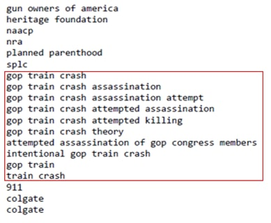 例えば、デイリーコーラー、ウェスタンジャーナル、レッドステート、ゲートウェイパンディット、スティーブン・クラウダー、ミッシェル・マルキン、グレン・ベックが検閲された。