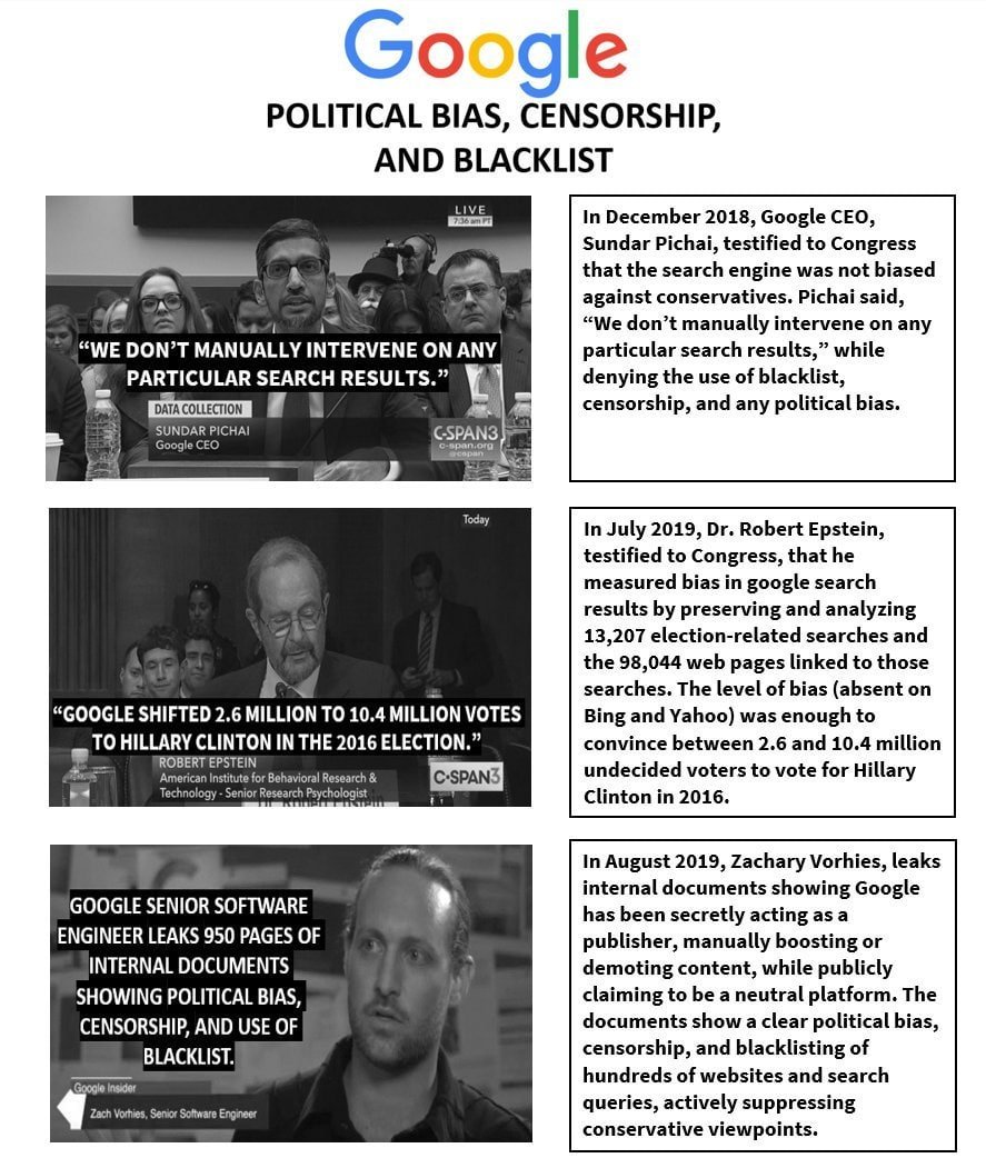 2019年、950ページに及ぶグーグルの内部文書が流出し、グーグルがブラックリストと機械学習アルゴリズムを使って保守派とポピュリストを検閲している証拠が示された。