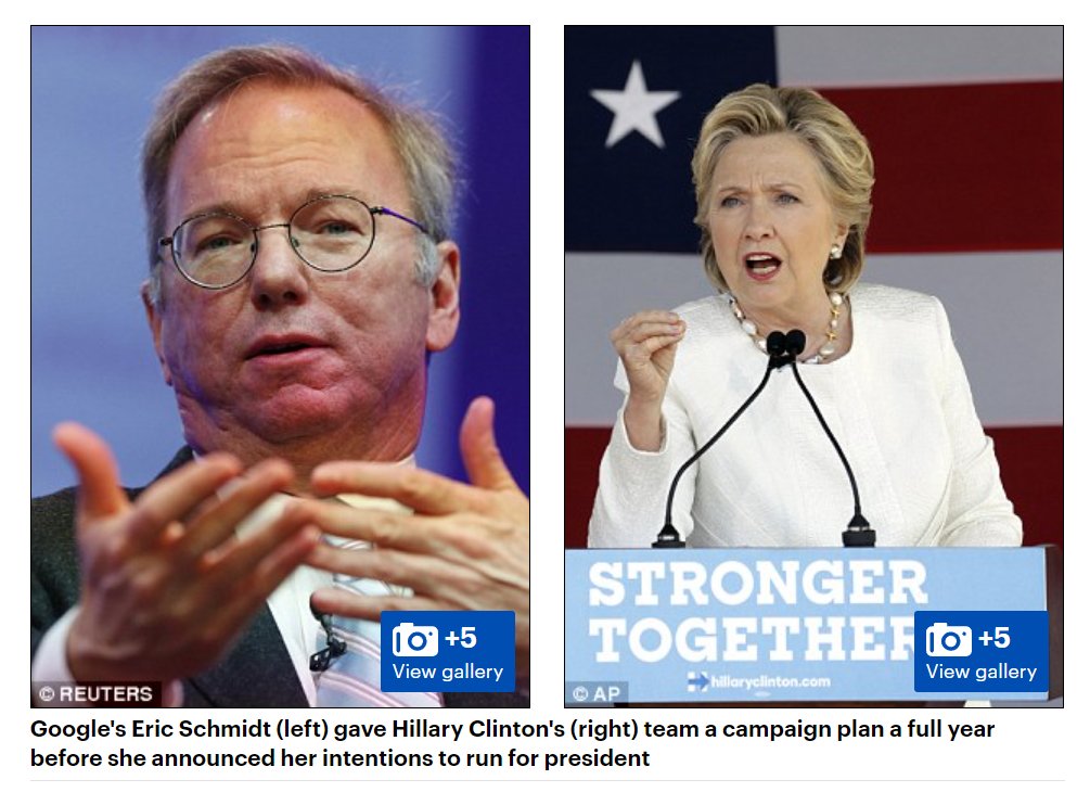 グーグルの親会社の会長は、ヒラリー氏の選挙戦の「外部顧問の長」だった
