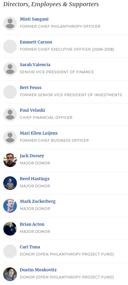 シリコンバレー・コミュニティ財団は、「ビッグテック」プレーヤーと、2020年の選挙中に起こった「カラー革命」でトランプと保守派を検閲した人たちで構成されています。
