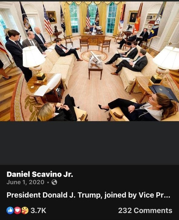 6月1日のツイートの写真は、暴動とアンティファに関する国民への演説を準備しているときに撮ったものだ。