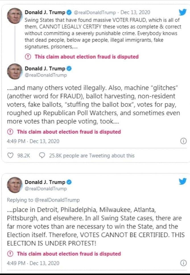 12月12日に国家情報長官との長い対話をした翌日に、トランプ大統領は不正選挙の詳細についてツイッターで発言している。