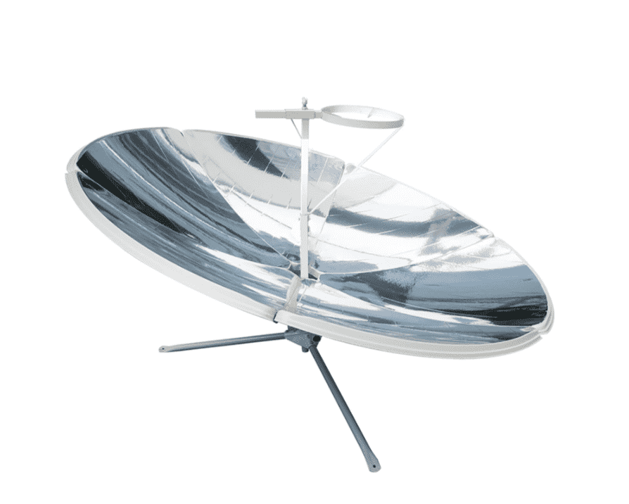 これはソーラークッカーというものだそうで、太陽の熱を反射して一点に集約し、調理をすることができるという。