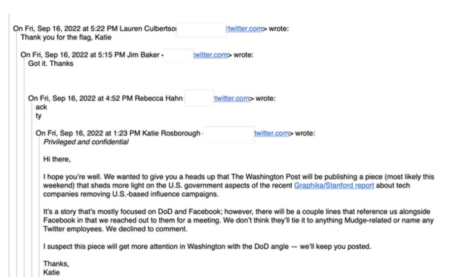 それでも、2020年中からの多くの電子メールは、ツイッターの上級幹部が、国防総省の偽アカウントと秘密プロパガンダの広大なネットワークをよく知っておきながら、それらのアカウントを停止しなかったことを示しています。