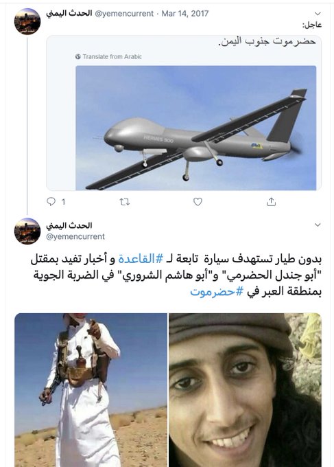 ドローンがアルカイダ所有の車を標的にし、殺害のニュース