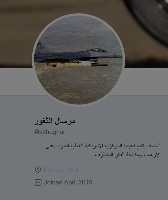 このアカウントは、対テロ戦争と過激派思想との戦いをカバーするために、米国中央軍に属しています。