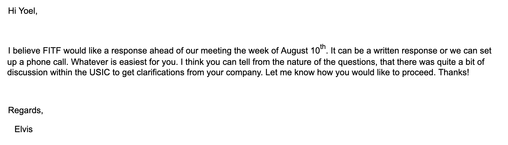 FITF(海外影響力対策本部)は8月10日の会合に先立ち、回答が必要だと考えています。