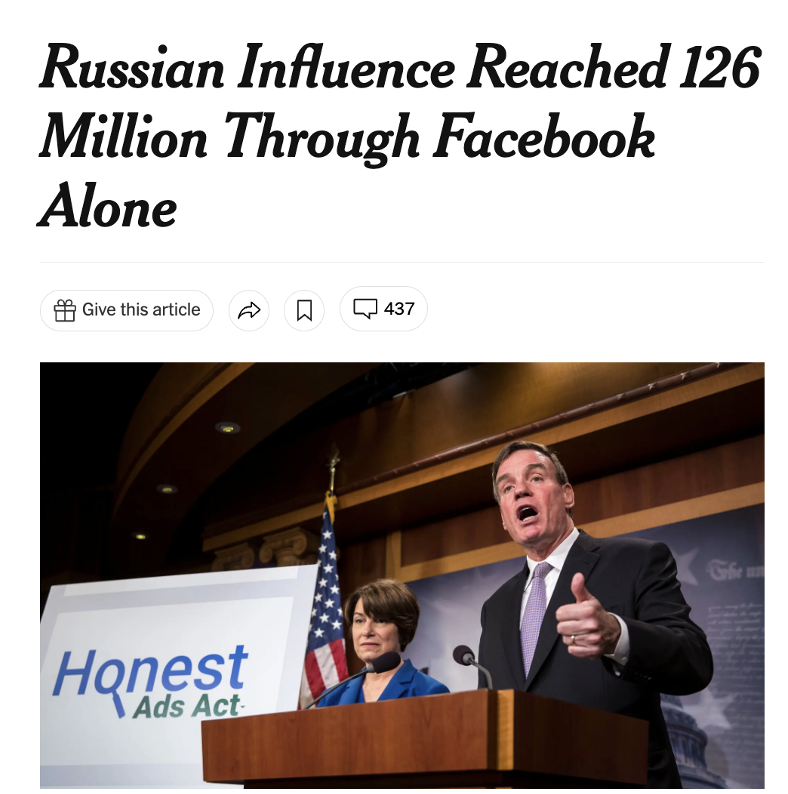 今、この話が出たことで、これらのロシアのアカウントによる10万ドルのフェイスブック広告の購入に焦点が当たっているように思えます。