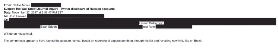 件名 Re: ウォールストリートジャーナルの問い合わせ-ツイッターのロシアアカウントの開示 情報機関室で行います。