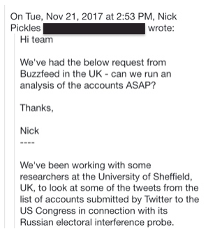ツイッターは内部的に、バズフィード/シェフィールドの調査結果を支持することを望みませんでした。