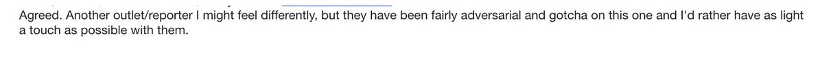 広報ポリシーチームとの話し合いでは、以下の理由から、記録に残るような声明を出すことは推奨していません。