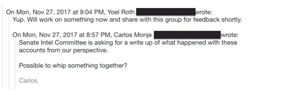 上院インテル委員会は、私たちの観点からこれらのアカウントで何が起こったのかを書き出すよう求めています。