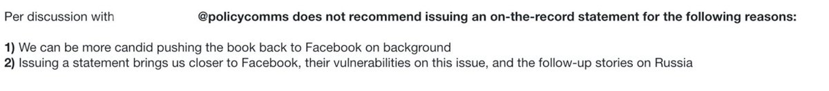 2) 声明を出すことで、フェイスブックやこの問題に関する彼らの脆弱性、そしてロシアに関する続報に近づくことができます。