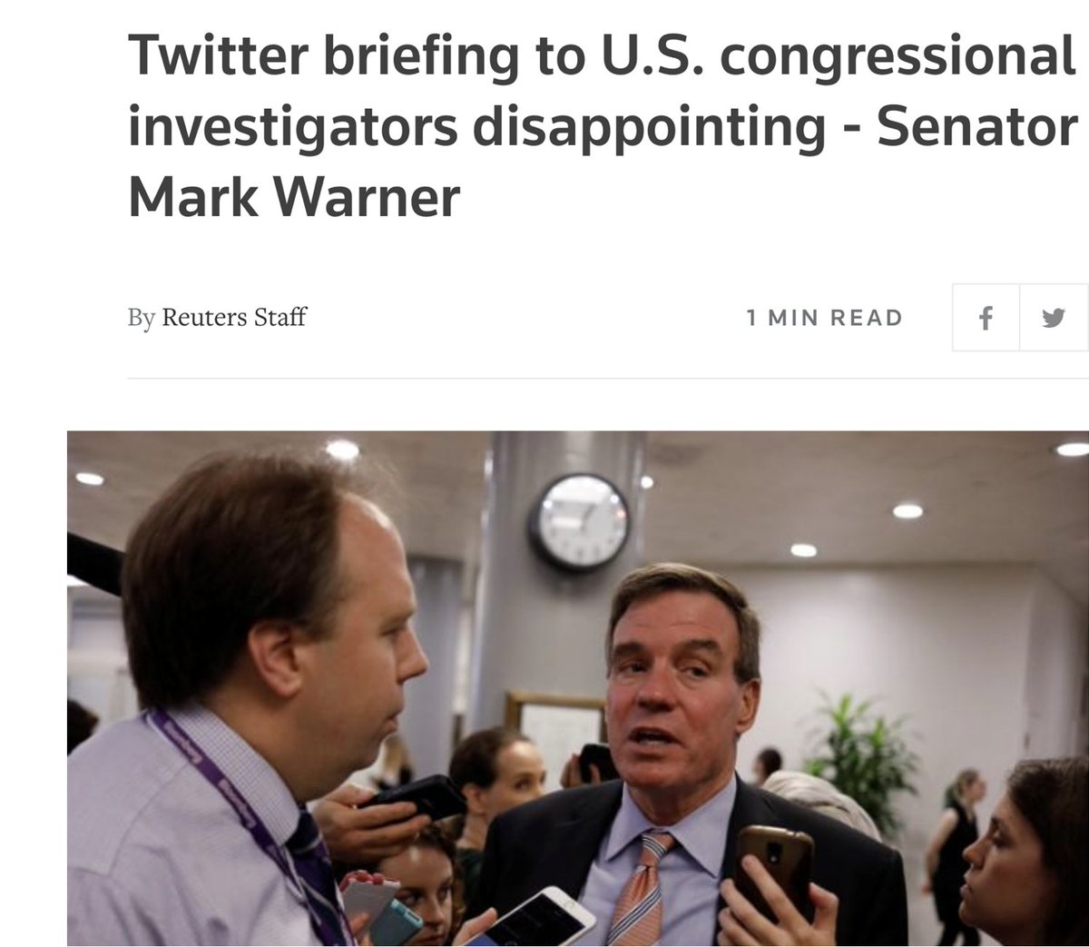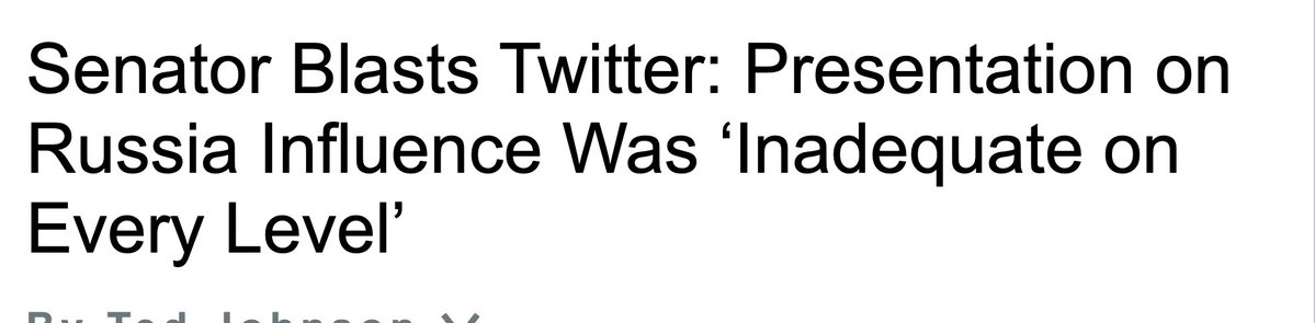 このわずかな結果を受け、情報委員会の民主党委員長であるバージニア州のマーク・ワーナー上院議員は激怒し、直ちに記者会見を開き、ツイッターの報告書を 「あらゆるレベルで率直に不適切」と非難したのです。