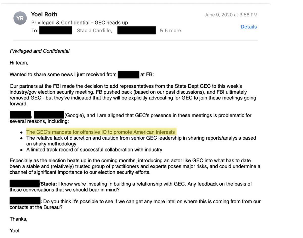 これらの証拠をみると、FBIが中心となって、CIAやDHSはもちろんのこと、国務省や各州、さらには個人議員たちまでが言論統制に躍起になっていたことがよく分かります。