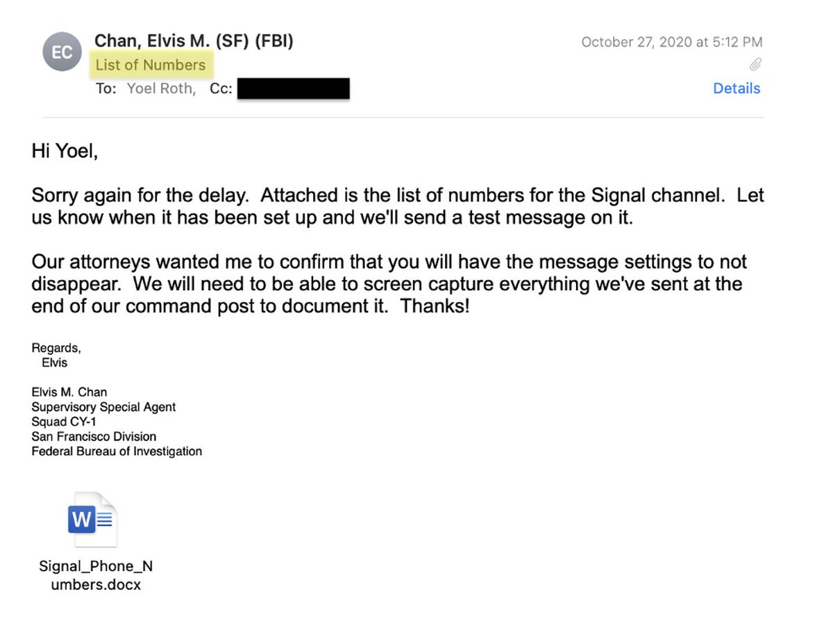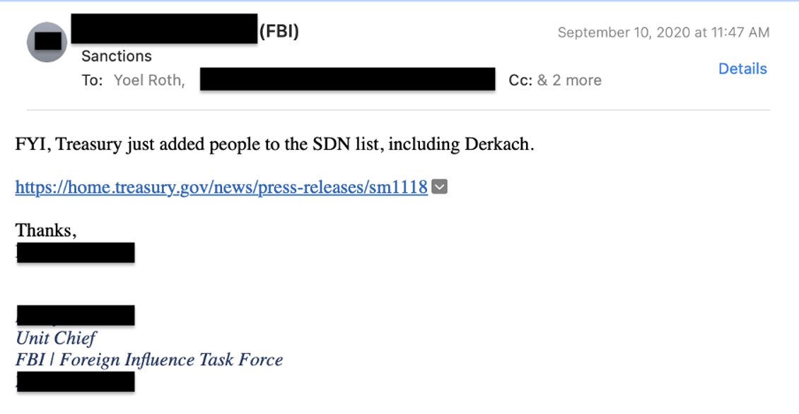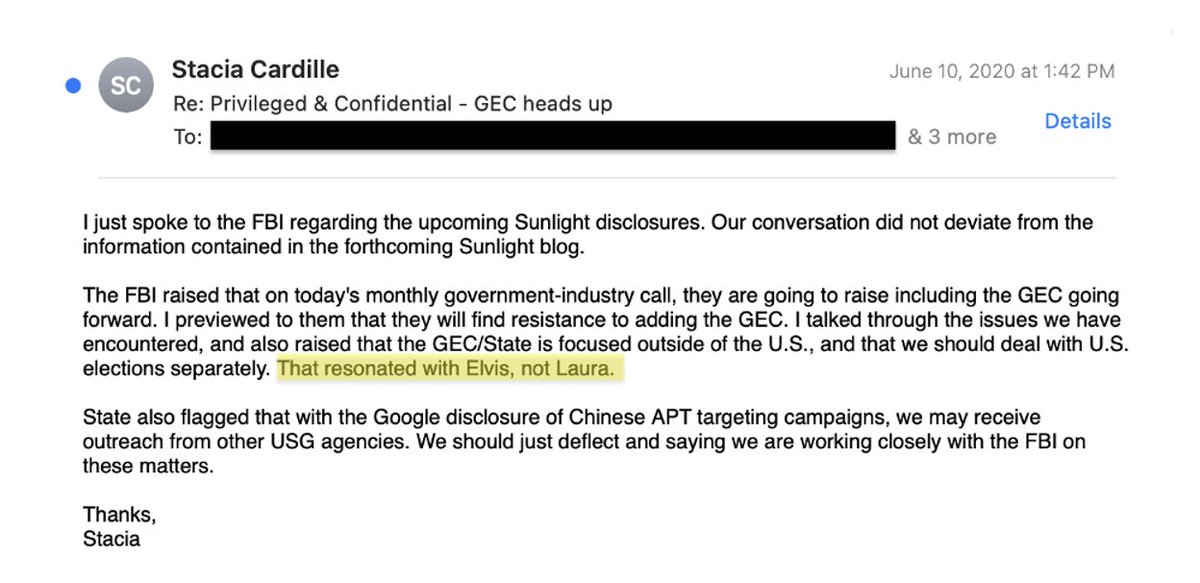 「添付されたメールアカウントは…「影響力作戦、ソーシャルメディア収集、ソーシャルエンジニアリング」に使用された可能性があります。