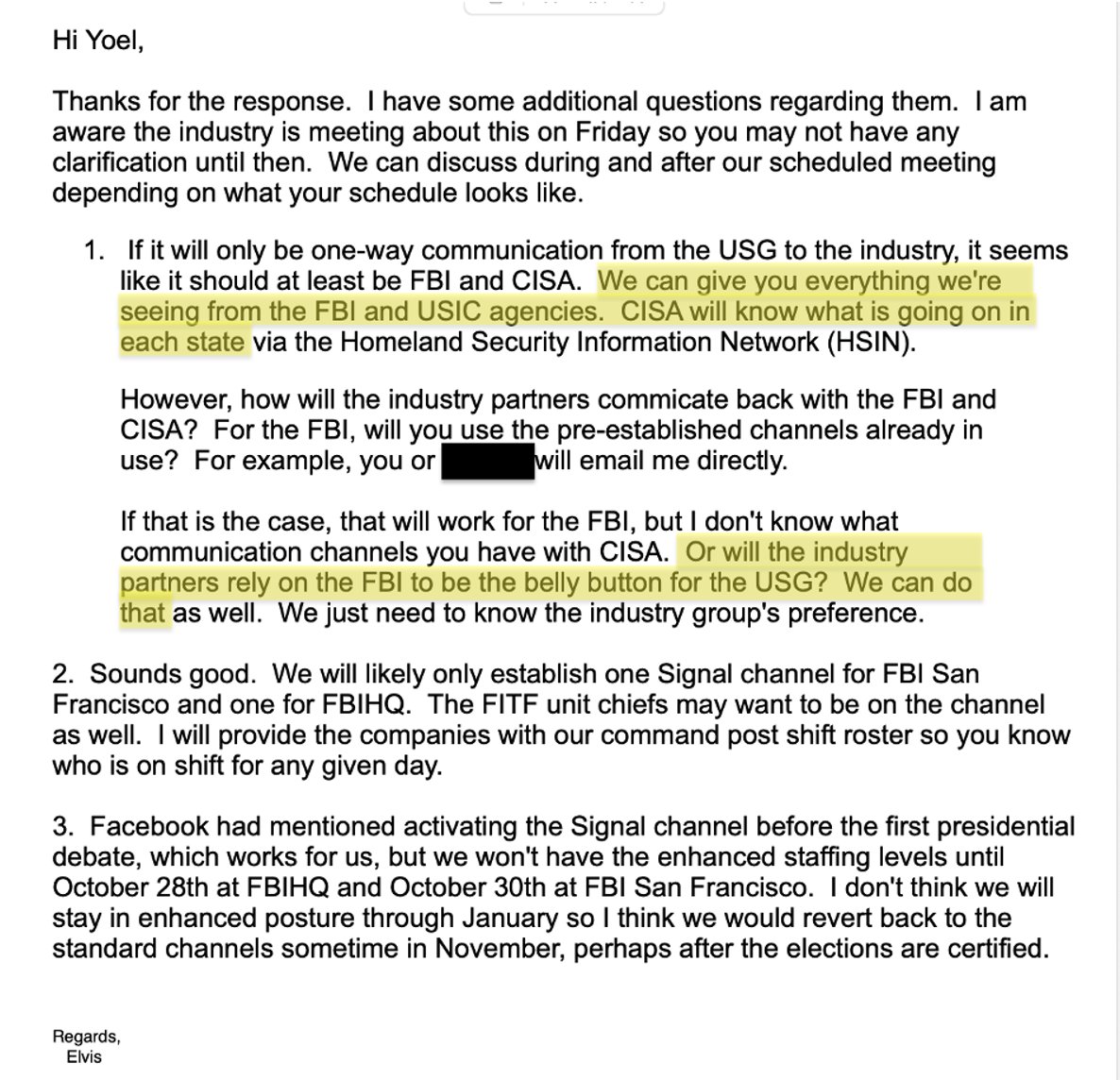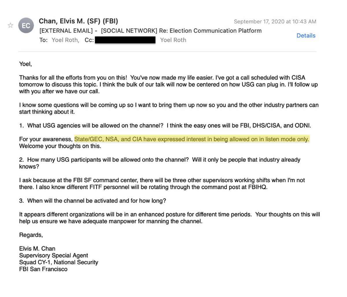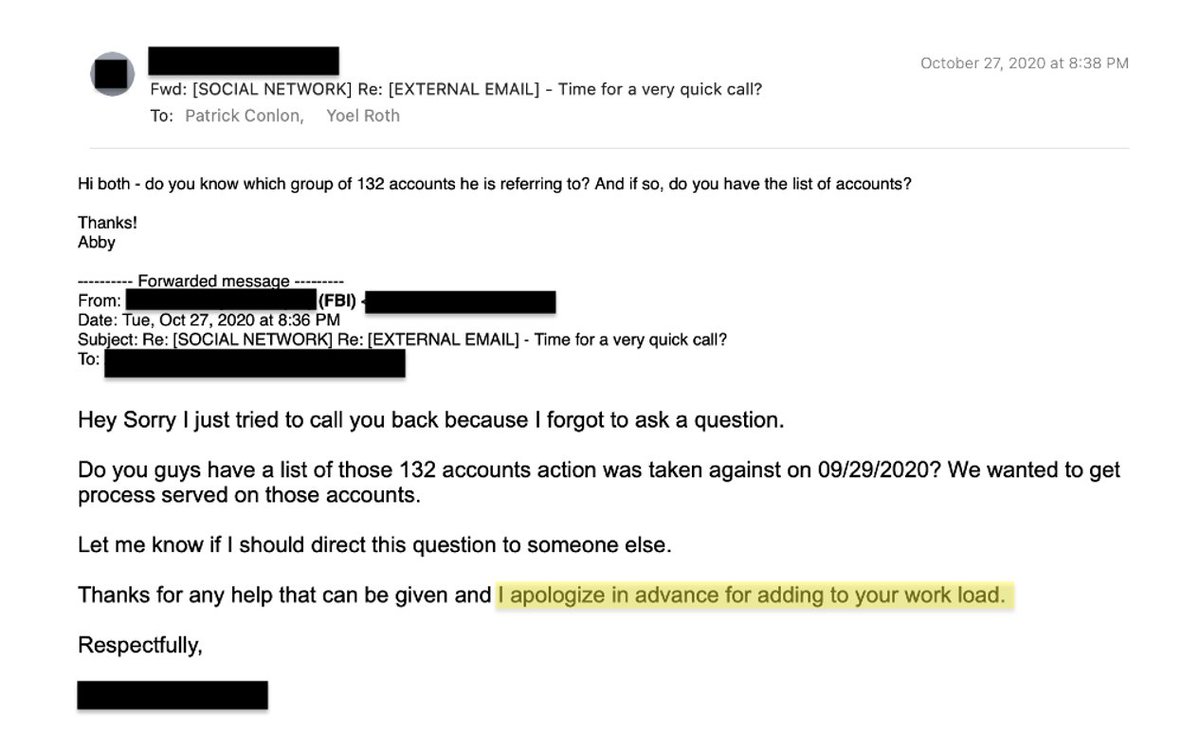 2020年の選挙の数週間前までには、ツイッターは様々な依頼の流れに混乱し、職員はどれがどれだかFBIに尋ねなければなりませんでした。