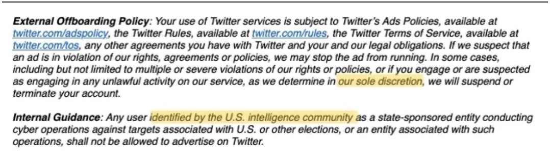 「国家的行為者」についての文言は、ツイッターの内部ガイダンスに合致していることに注意してください。