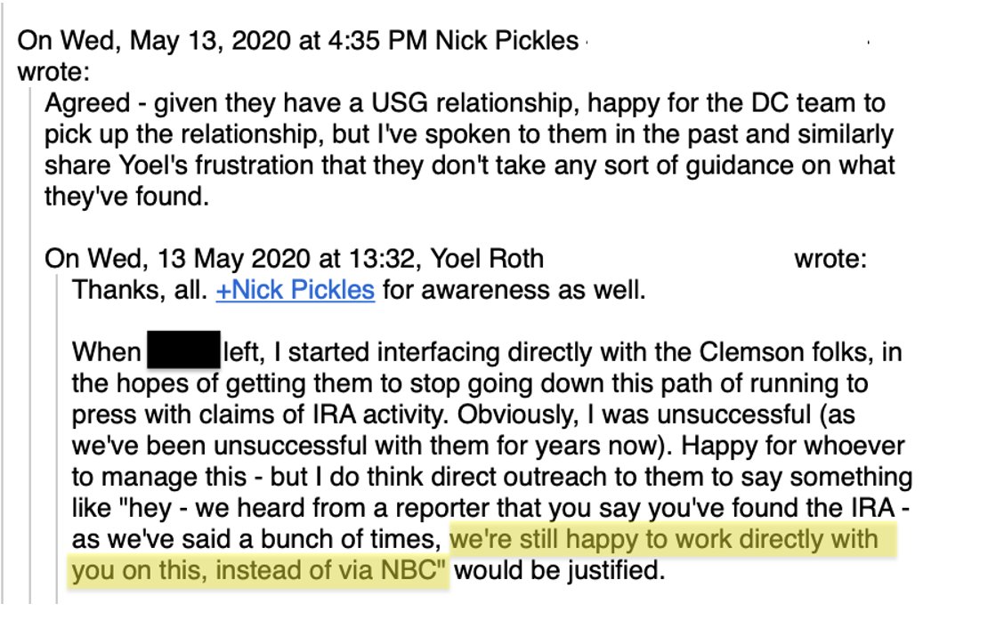 ロスは、クレムソン研究所のような外部の研究者に、外国の干渉に関する話をメディアに押し付ける前に、自分たちに確認するように説得しようとしたが、無駄でした。