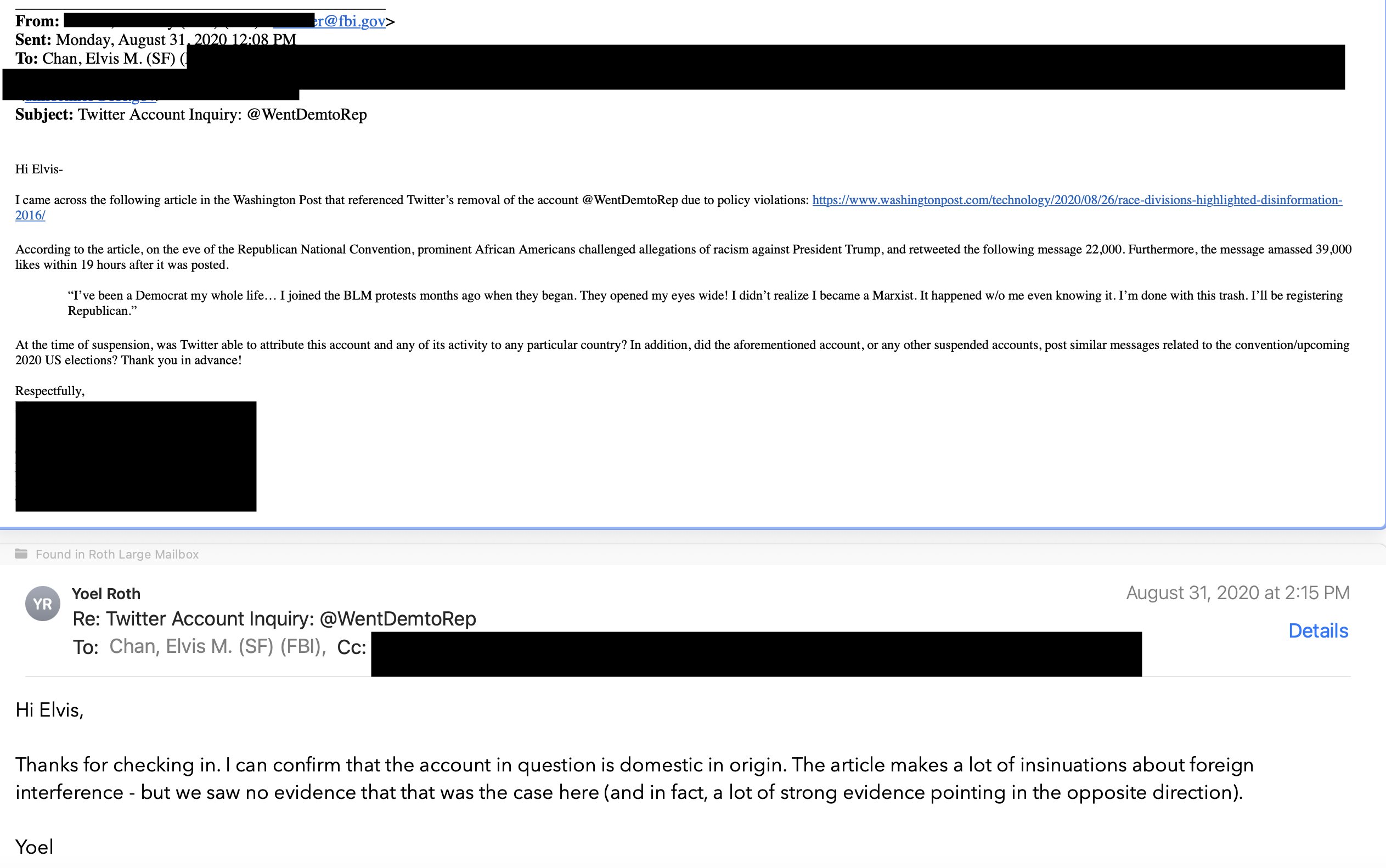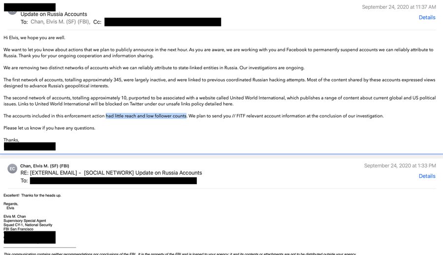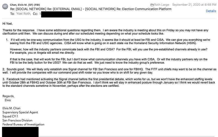 結局、ニュースメディア、ツイッター、その他のソーシャルメディア企業の幹部を狙ったFBIの影響力キャンペーンは成功しました。