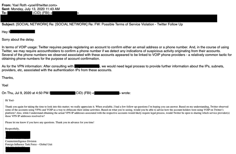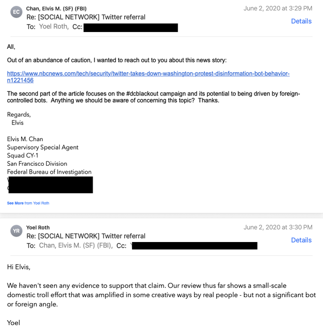 ・FBIとツイッターは、秘密の会話をするために準備していた