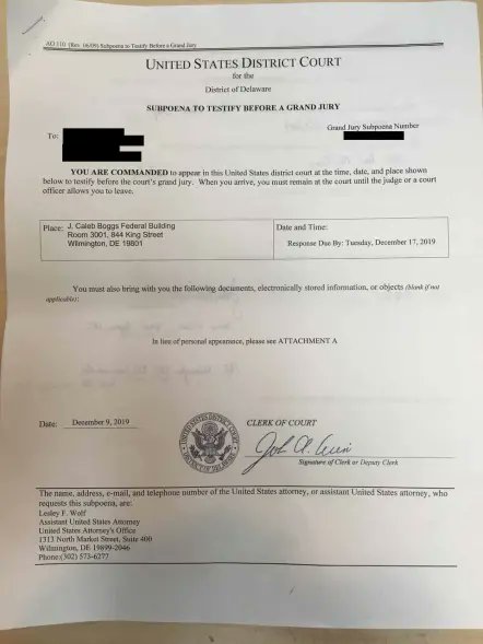 2019年12月9日、FBIはハンター・バイデンのラップトップに対する召喚状を発行し、持ち去ります。