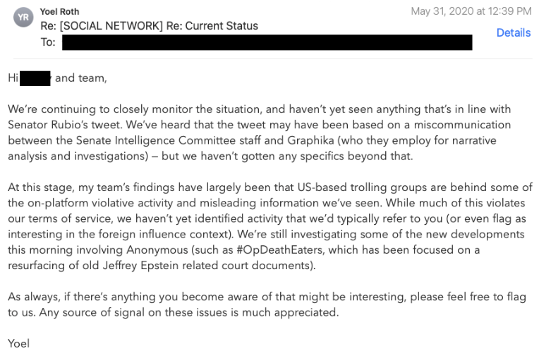 ・ツイッターには、ロシアからのプロバガンダ攻撃を疑う理由はなかった