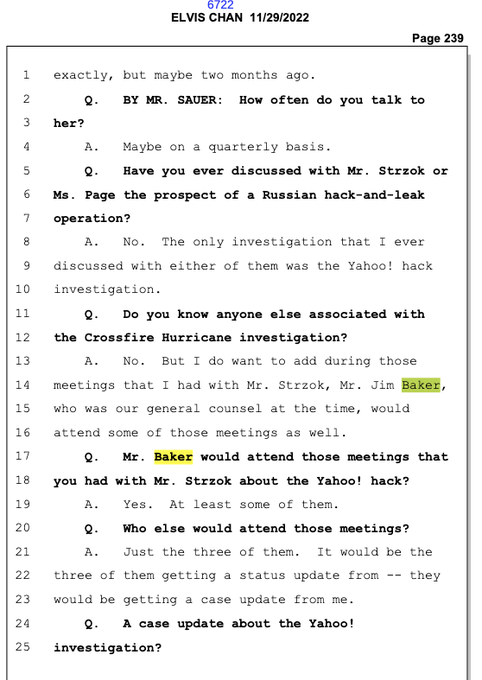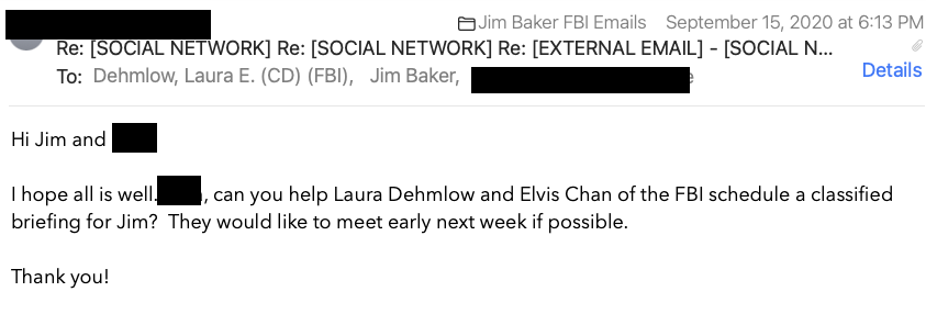 注目すべきは、当時のFBI法務顧問ジム・ベイカーが、報道機関に情報を漏らしたとして、2017年と2019年の2回、捜査を受けたことです。