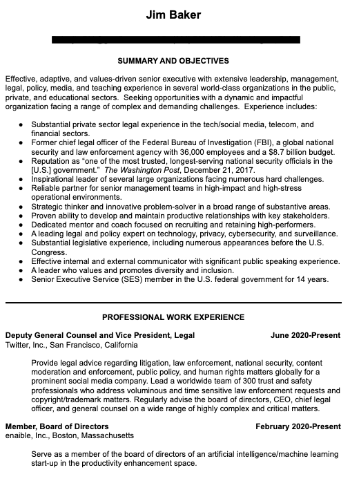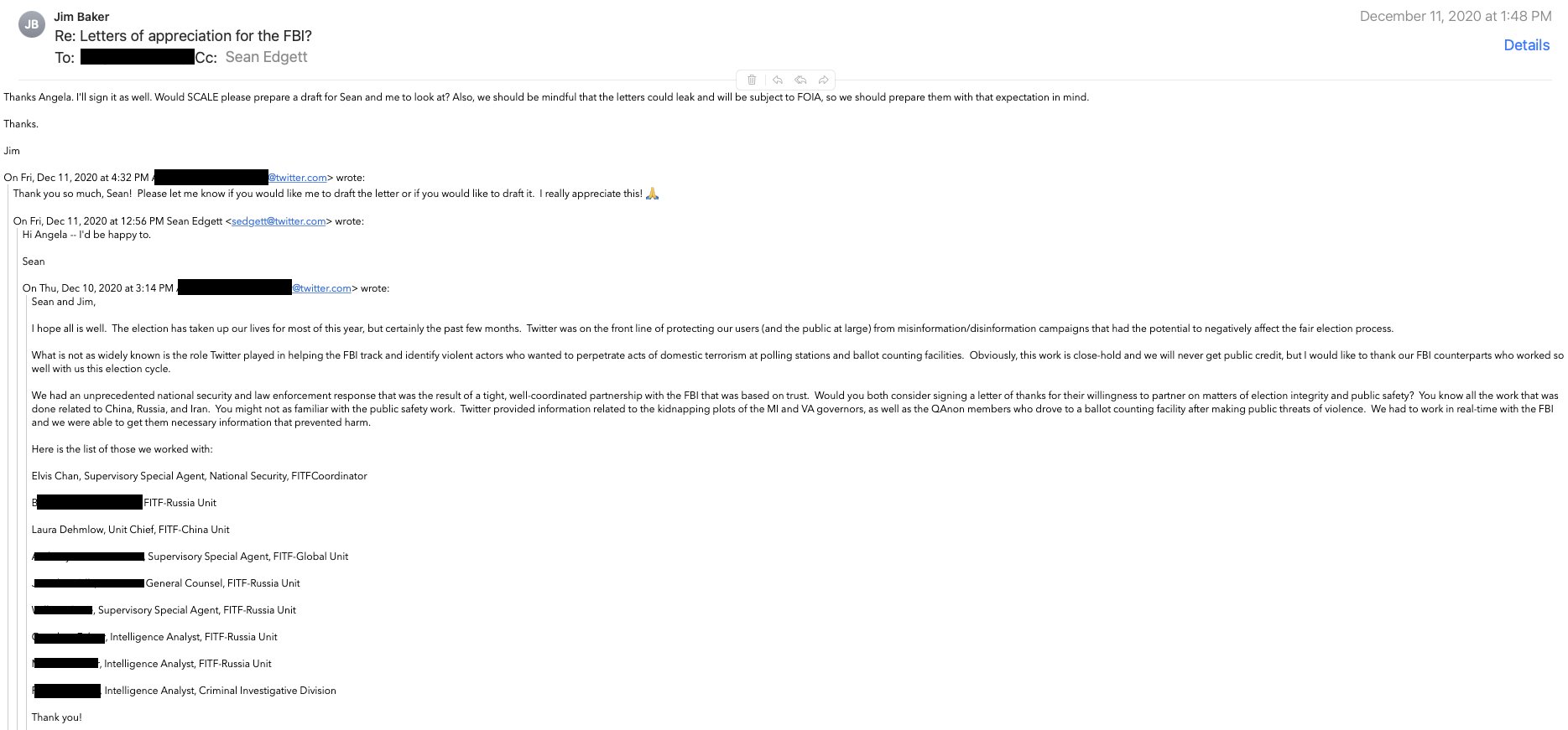 ・FBIの重要人物であるジム・ベーカーが、ツイッターの言論統制に関わっていた