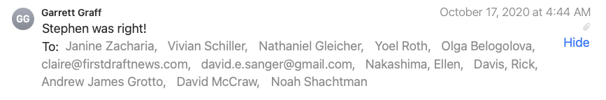 翌日、2020年10月14日、ニューヨーク・ポスト紙は、ジョー・バイデン大統領の息子、ハンターのビジネス取引を明らかにする衝撃的な記事を掲載しました。