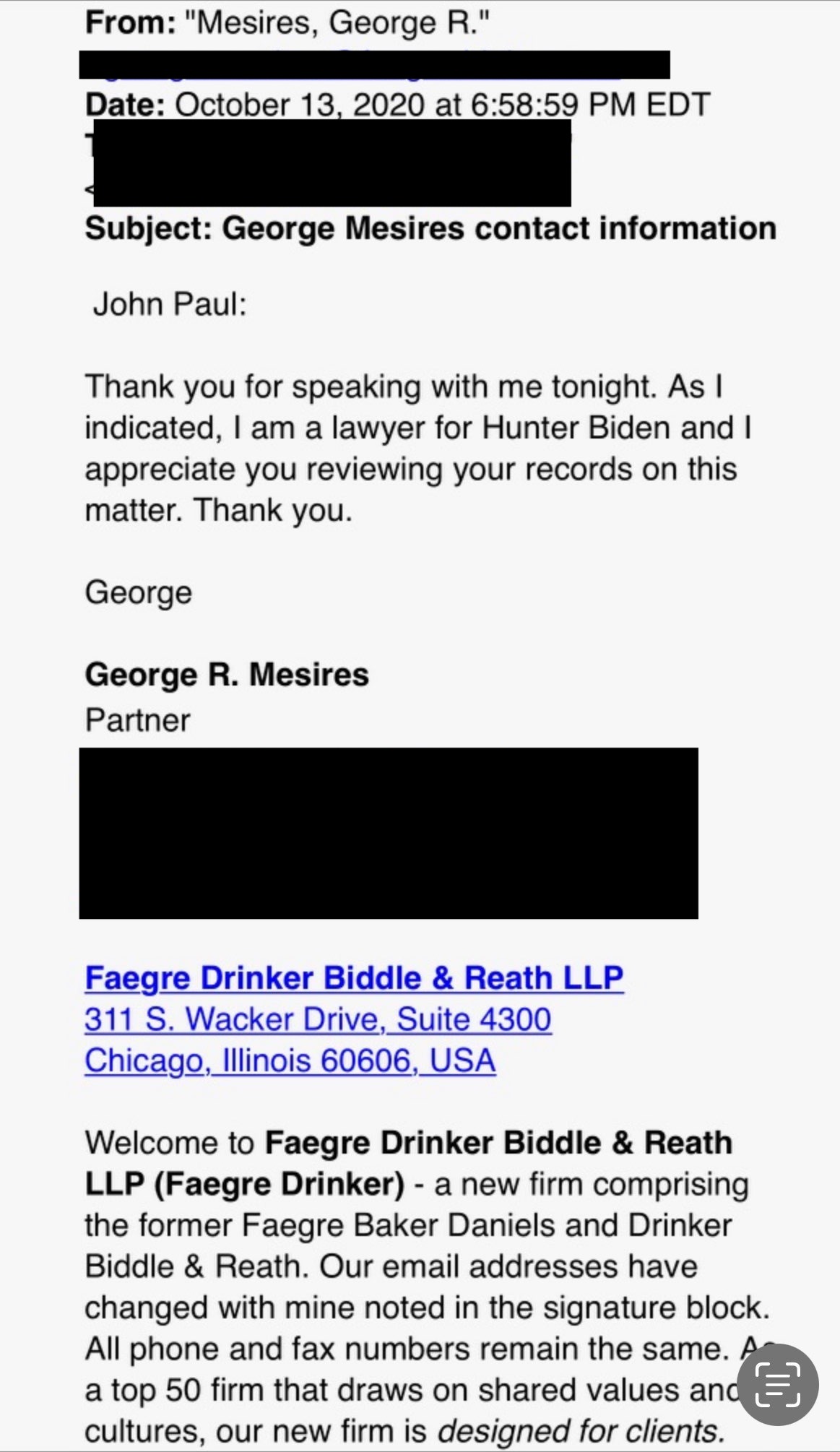 10月13日午後7時(東部標準時)前、ハンター・バイデンの弁護士、ジョージ・メシレスが、マック・アイザックにメールを送りました。