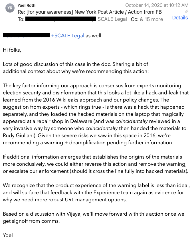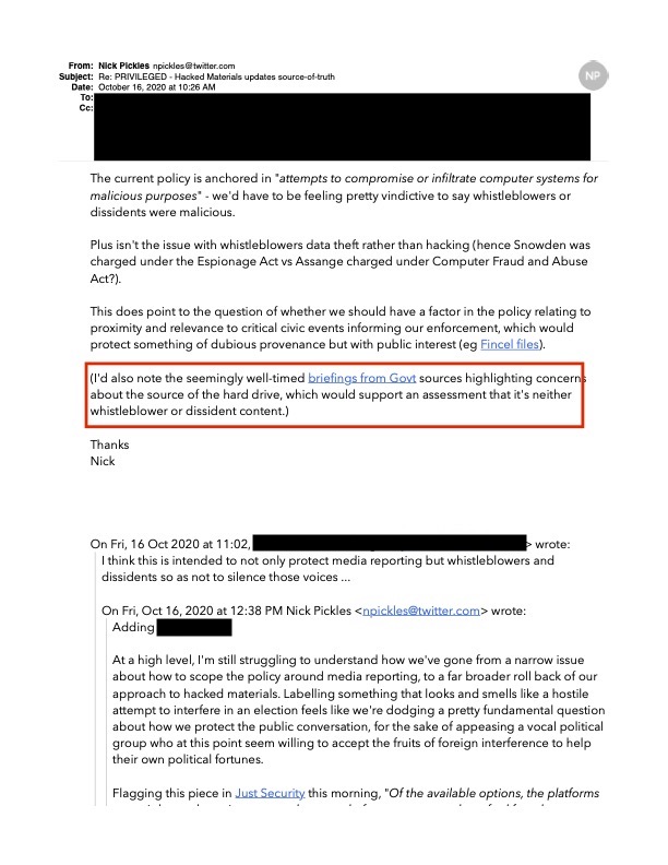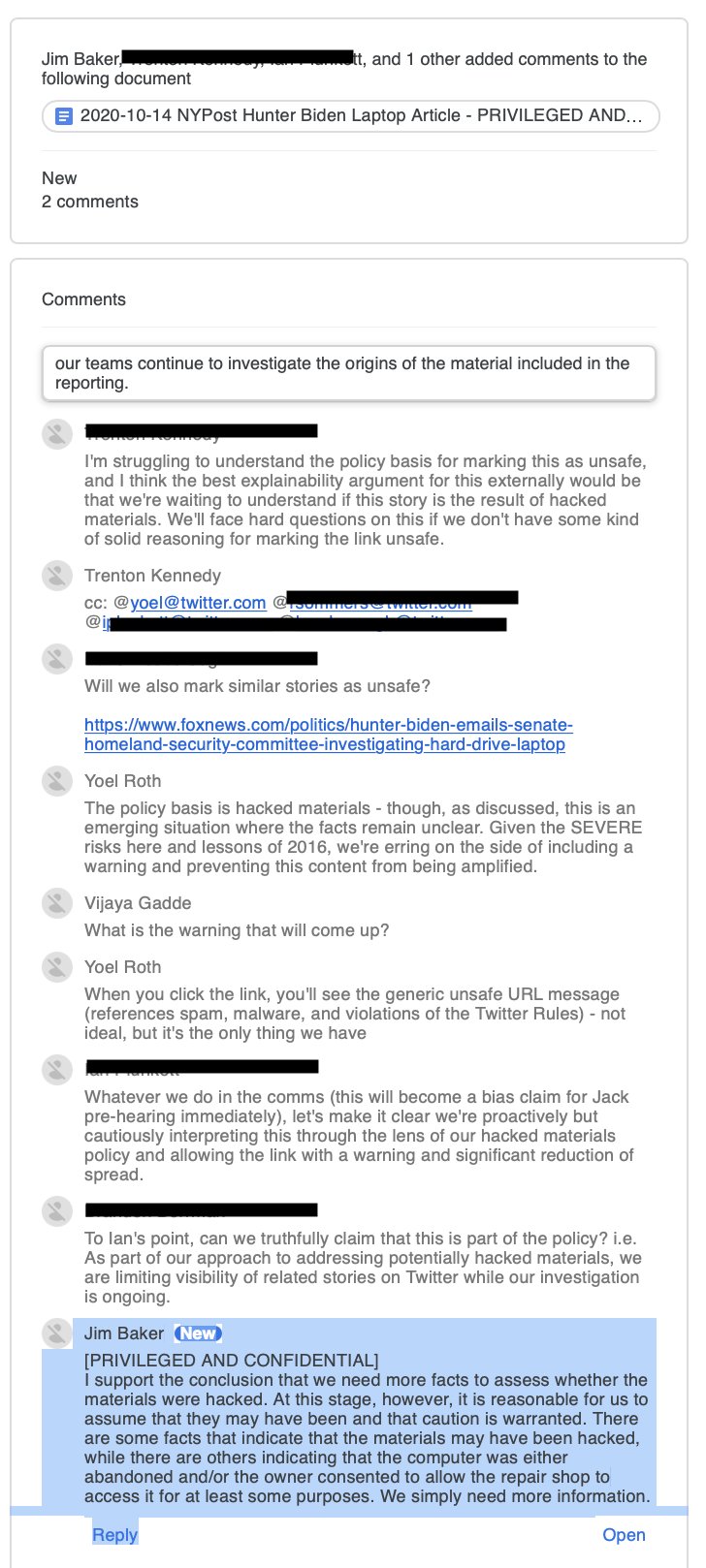 12月2日に@mtaibbi は、完全に正確な記事を検閲する決定をめぐるツイッター内部の議論について説明しました。