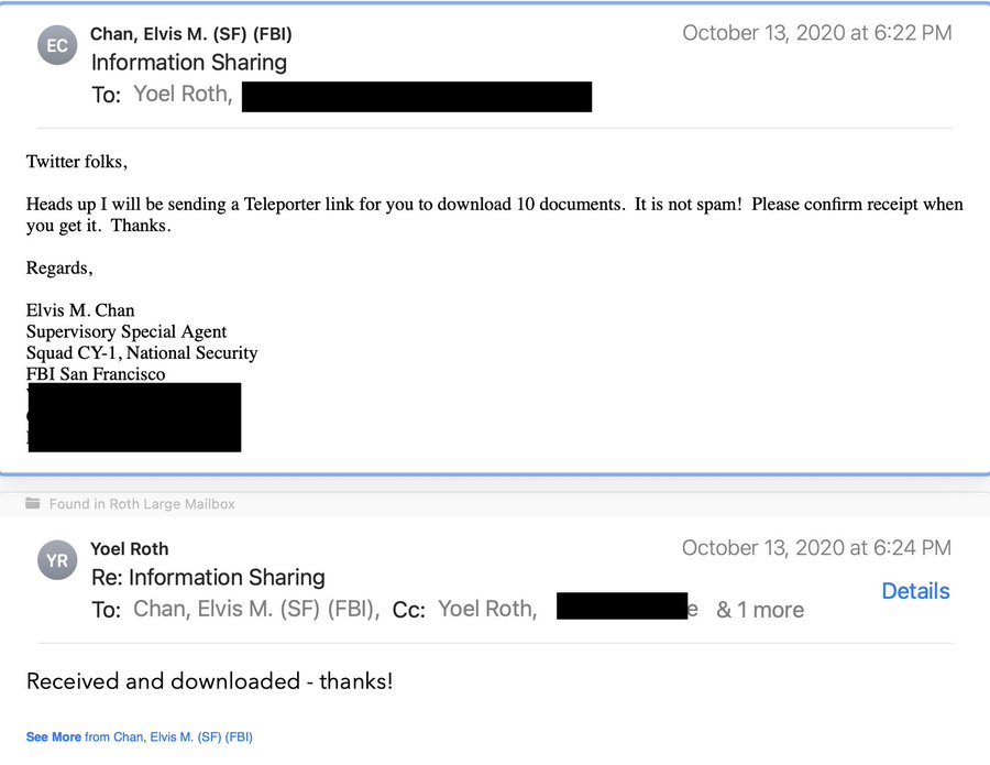 FBIはツイッターにラップトップを無視するように呼びかけていた