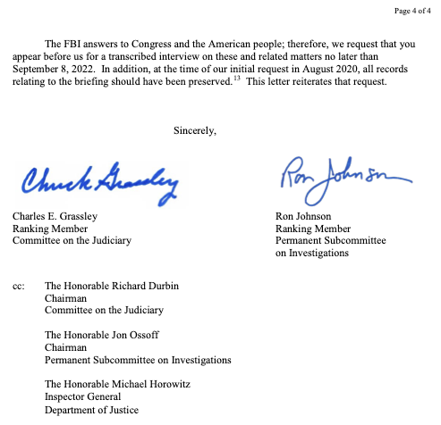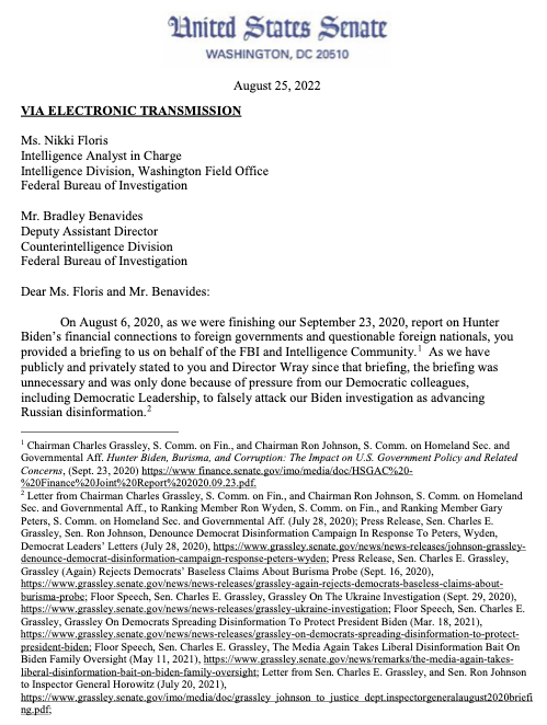 それにもかかわらず、FBIは 民主党の圧力に屈し、悪名高い2020年8月6日のブリーフィングを行いました。