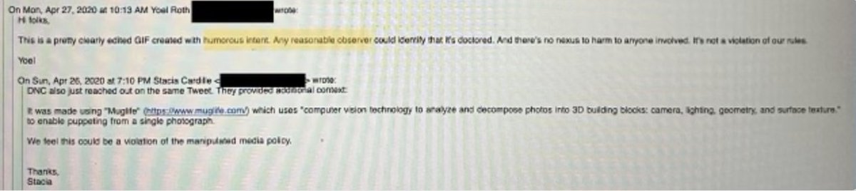 Re: ディープフェイクのツイートにかんする質問 ヨエル、今朝、DNCから、同じ画像で文脈が異なる別のツイートについて連絡がありました。